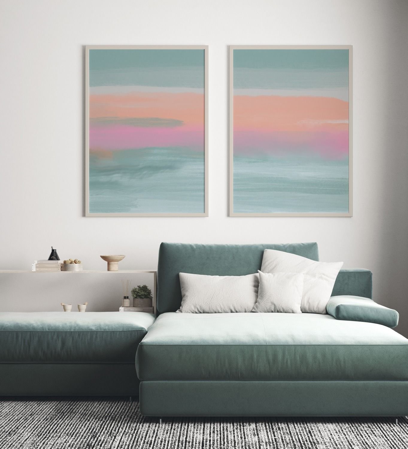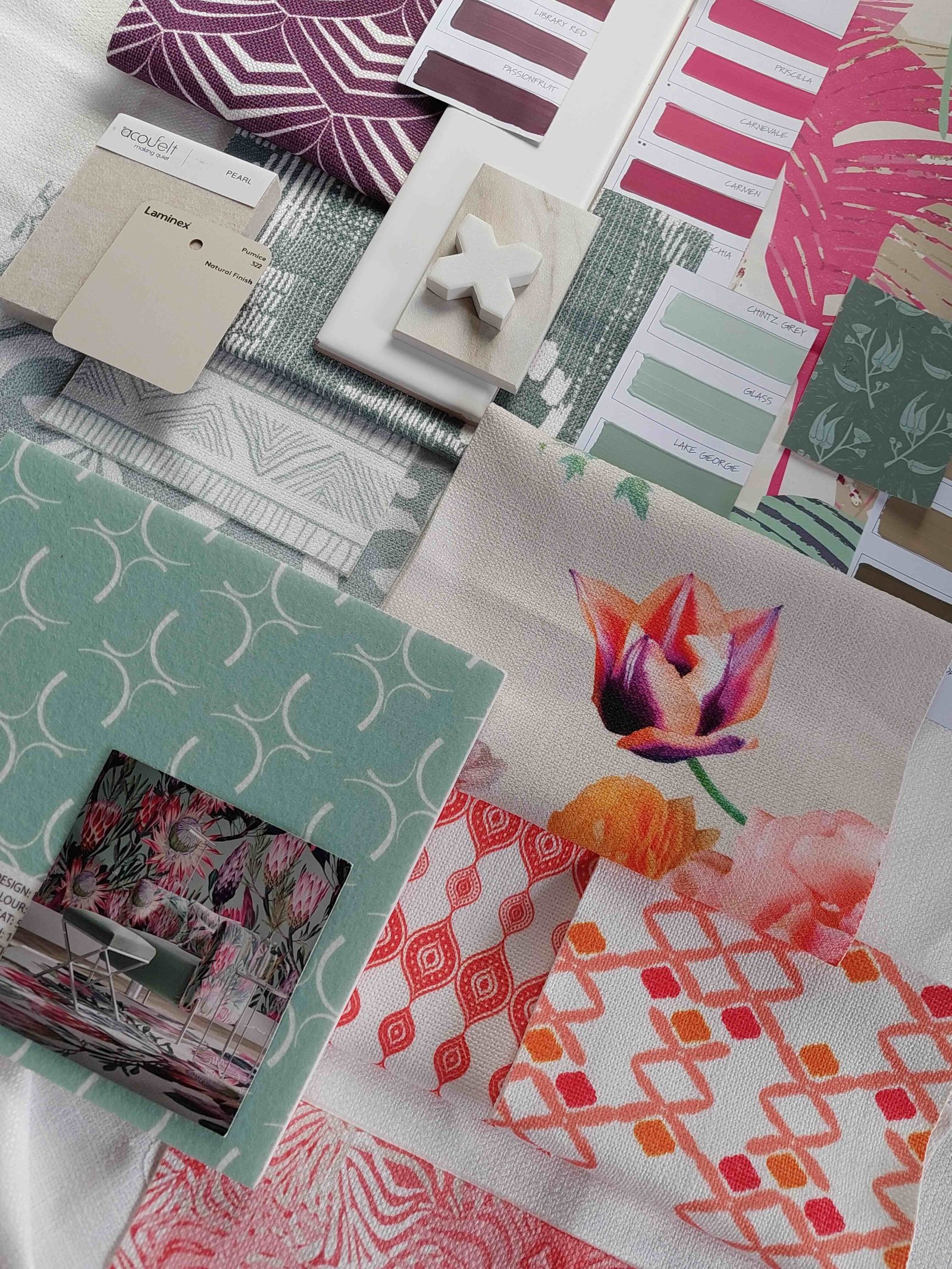 Vibrant hot fuchsia and zesty orangesd paired with with shades of duckegg teals, reminiscent of a beautiful dusk sky.
