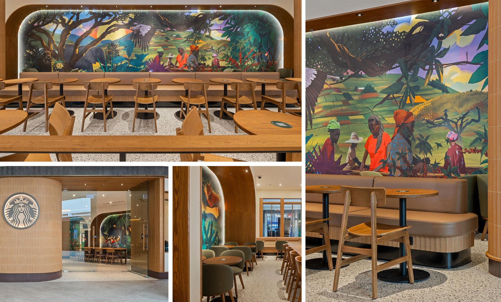 The new Starbucks at Chadstone Shopping Centre, features a large hand painted mural that we printed onto our high performance PVC Free wallcovering. You can view more information on our wall finishes here.