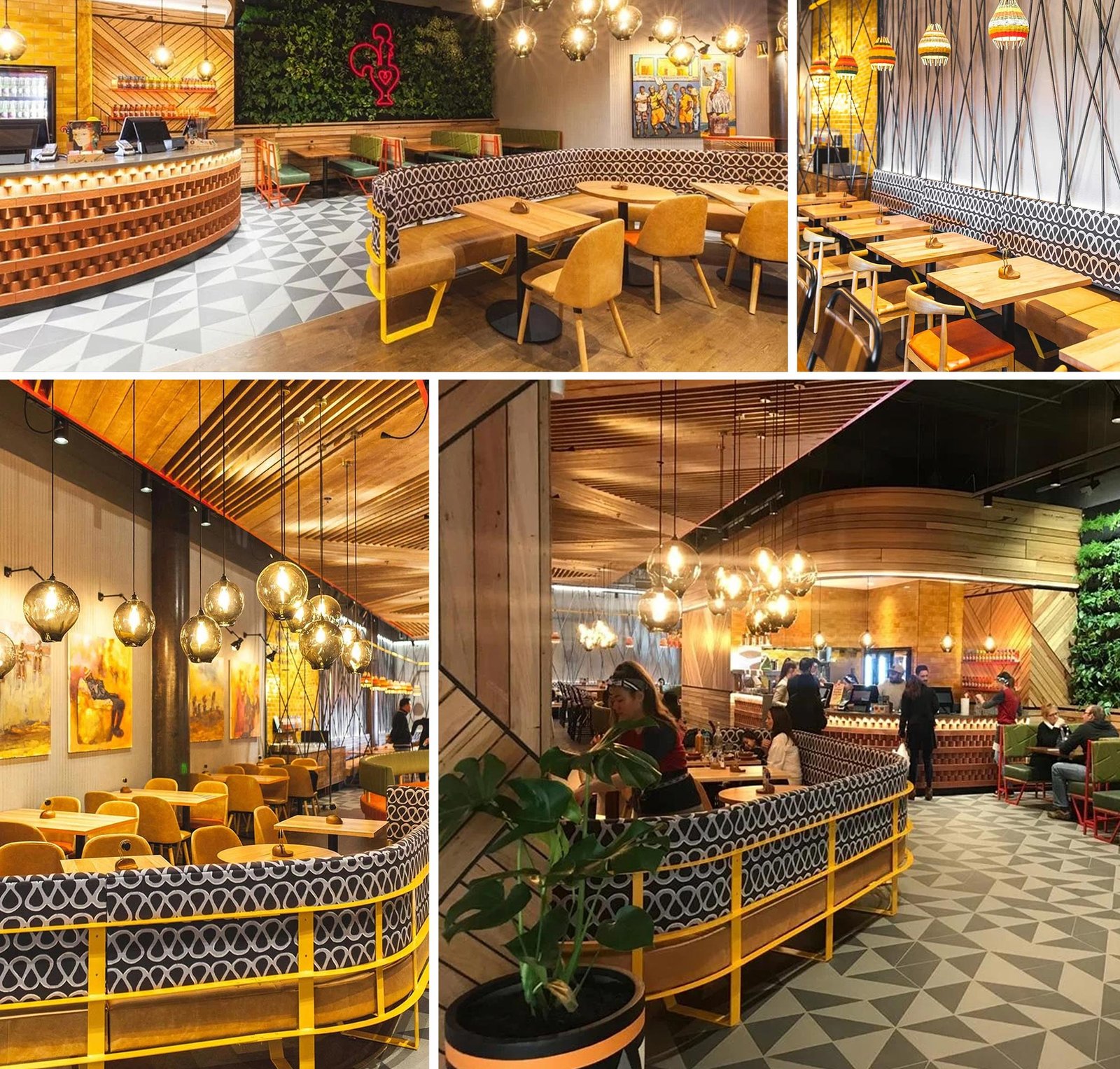 A custom printed design, on our Pollock high performance fabric for the banquette seats at the Nandos St Lukes restaurant.