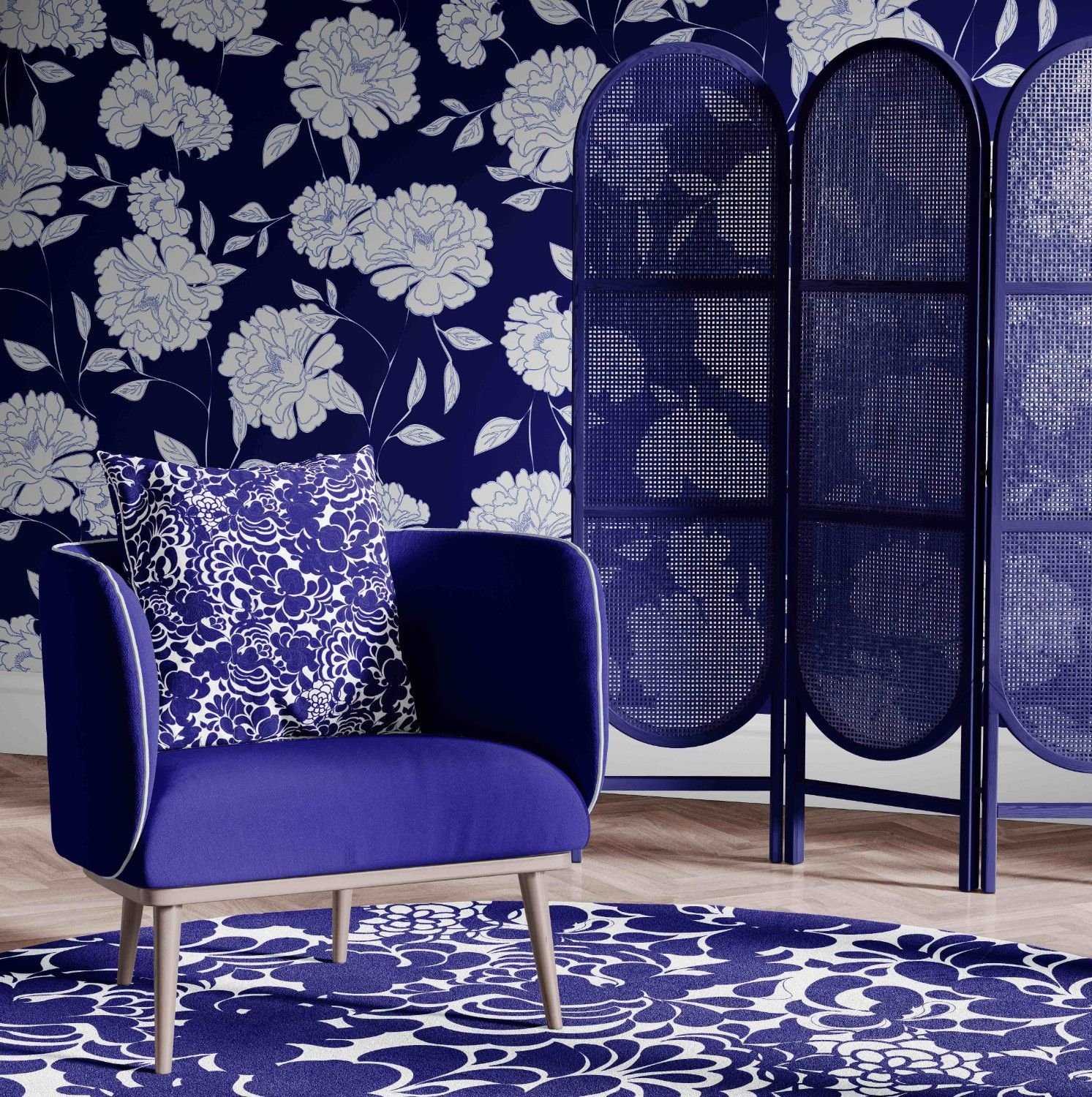 • blossom concept wallpaper rug cushion armchair upholstery