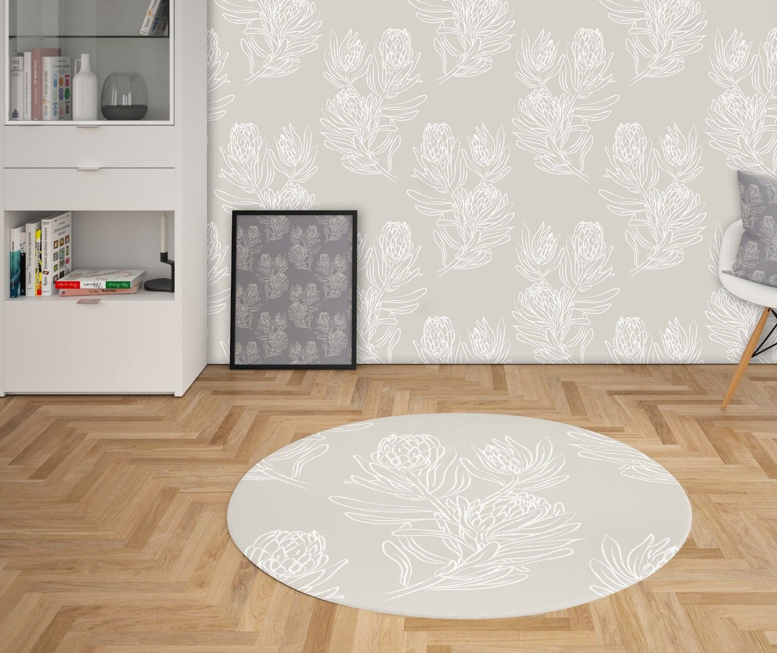 design kist concept wallpaper artwork circle rug and cushion