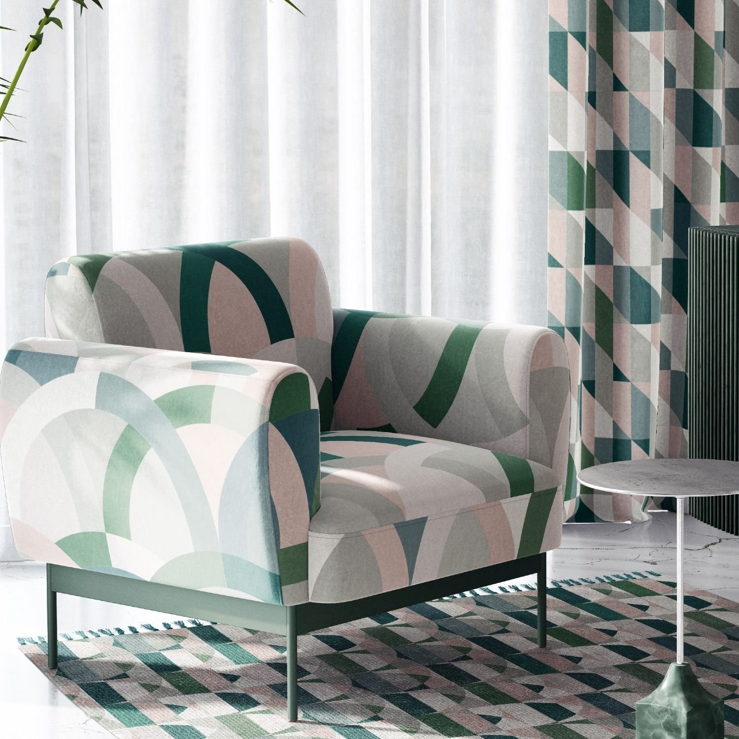 fractal playground concept armchair rug and curtain