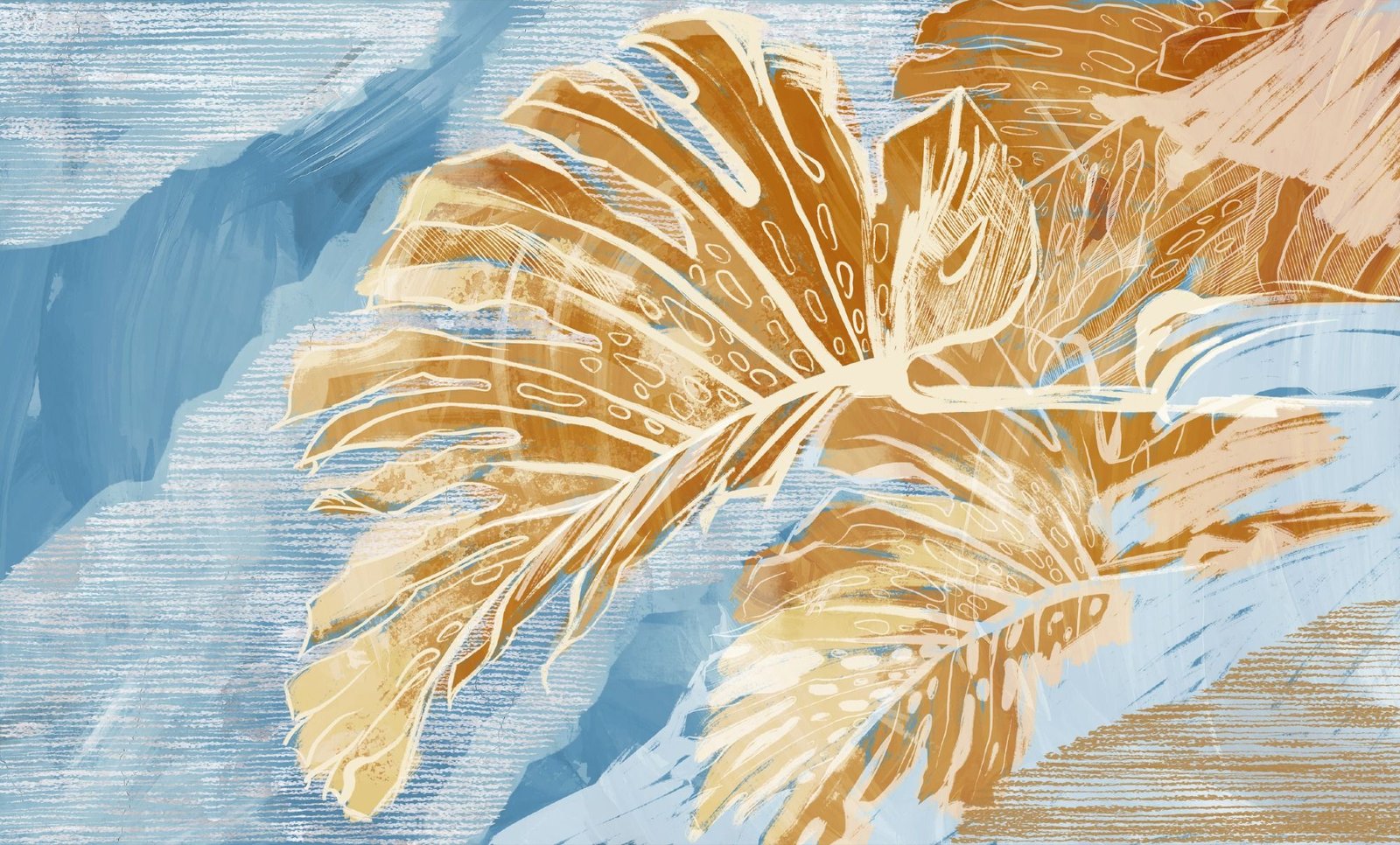 leafscapes spike fan fronds cobalt wash detail
